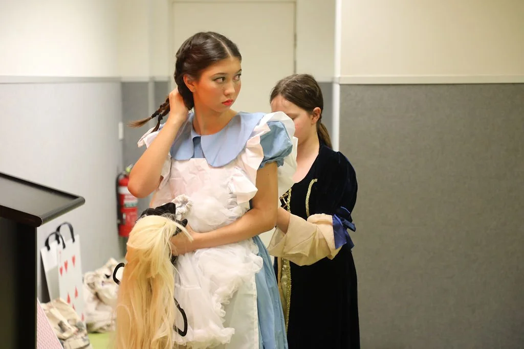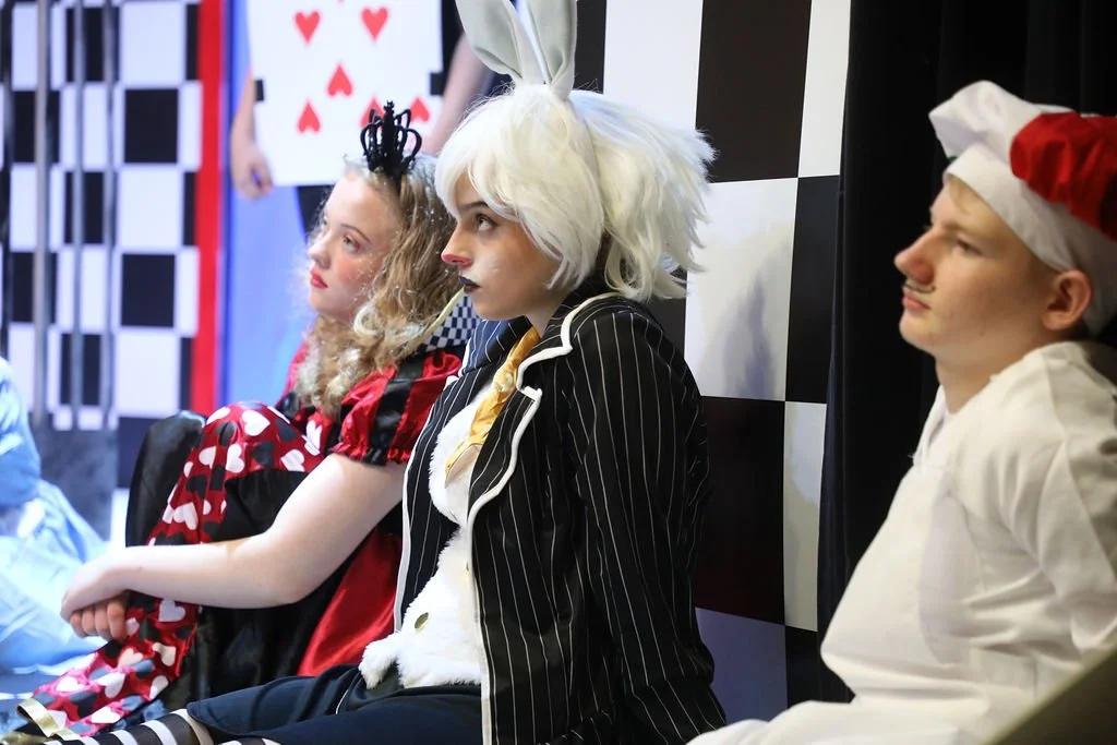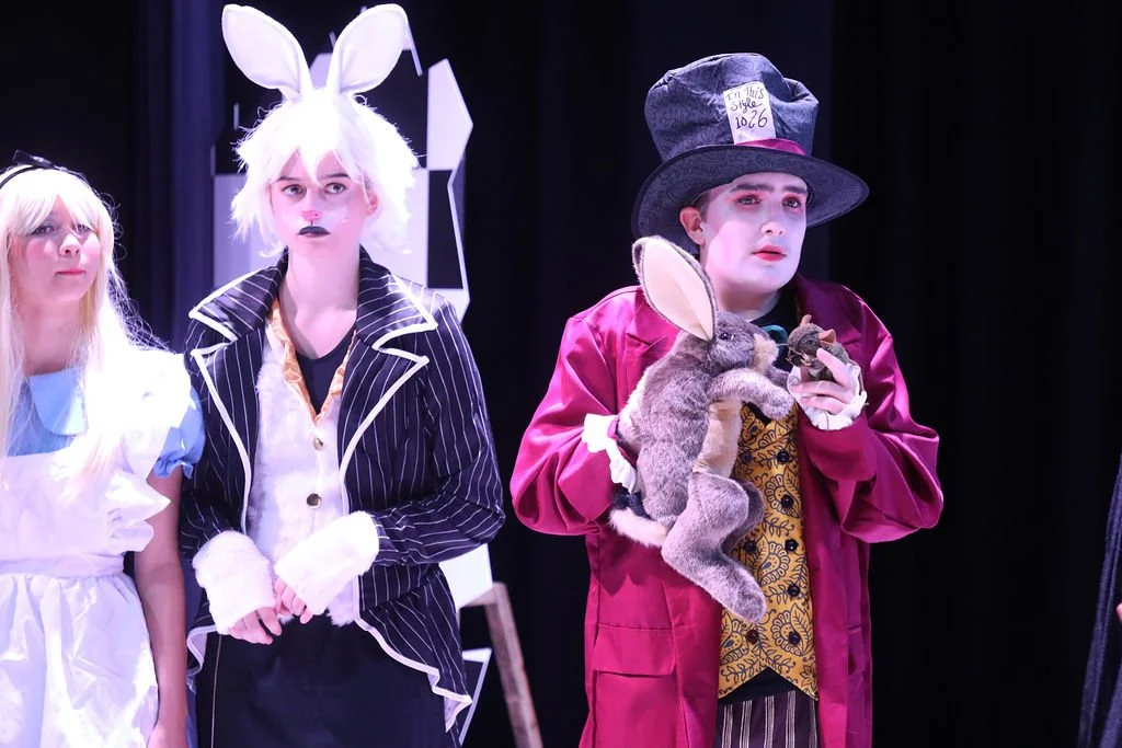 This original work has been inspired by the colourful stories and characters of “Alice in Wonderland” and “Alice through the Looking Glass.” It takes the fantastical characters of Wonderland and blends them into a new genre – that of the murder mystery. This work has been created alongside the young people who perform for you today. Therefore, you are not simply watching a group of talented young performers but a group of storytellers with skills that transcend the performance of the play itself.