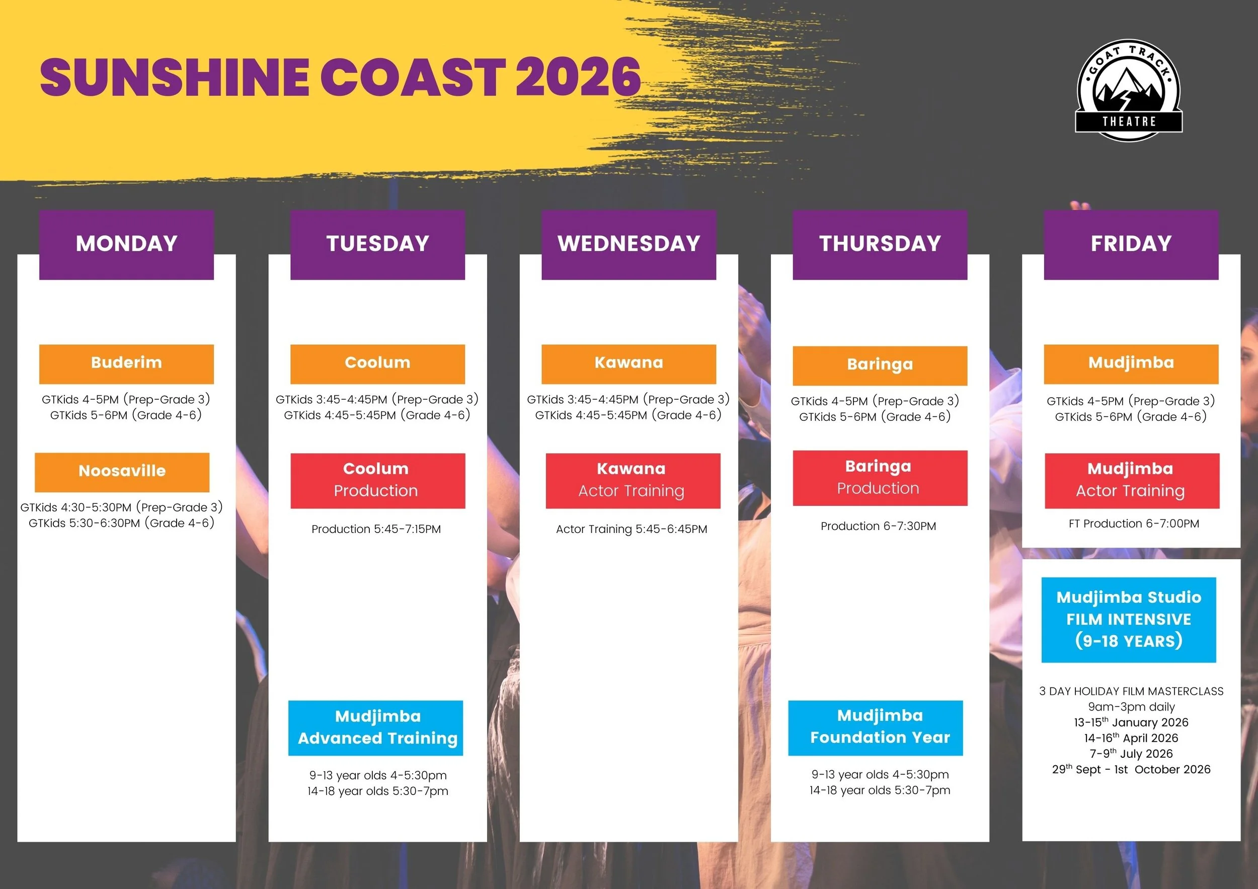 Below you will find the timetables for all of our regions and the campuses. Each program has a separate timetable. If you’d like to secure a trial or to pre-enrol in any of the programs listed, please see the links below.